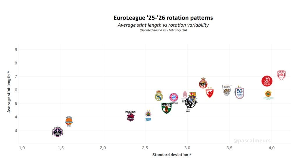This chart looks at how EuroLeague teams manage minutes: